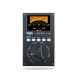 The needle-type meter that has enjoyed enduring popularity for its clear visibility and stable detection is now available in a handy size, with the meter located at the top of a sleek black aluminum body. The backlit LCD screen also shows the calibration setting, flat mode, note name, and the remaining battery life. Flat (b) and sharp (#) LEDs light to indicate pitch drift or perfect tuning in a way that's easily visible even on a dimly lit stage. A large dial makes it easy to choose the mode you need to use. Using the stand located on the back, you can conveniently place the GT-120 upright on your amp or other surface while practicing.