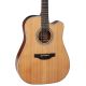 For players looking for a different sound, the GD20CE-NS combines a solid cedar top with mahogany back and sides to produce a warm, detailed tone that works beautifully for a wide range of musical styles. The slim satin-finish mahogany neck and 12”-radius rosewood fingerboard provide great feel and playability, while the onboard Takamine TP-4TD preamp system gives you a built-in tuner with three-band EQ and gain controls for excellent amplified performance and versatility.